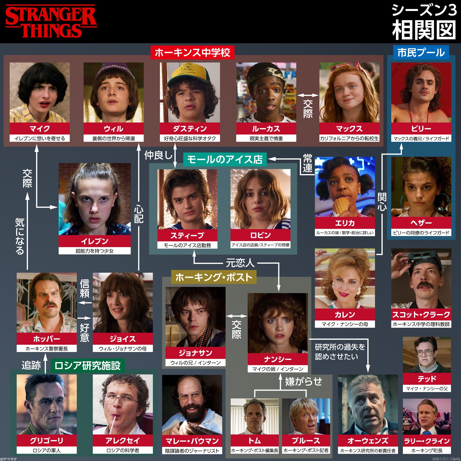 『ストレンジャー・シングス』シーズン3のキャラクター相関図